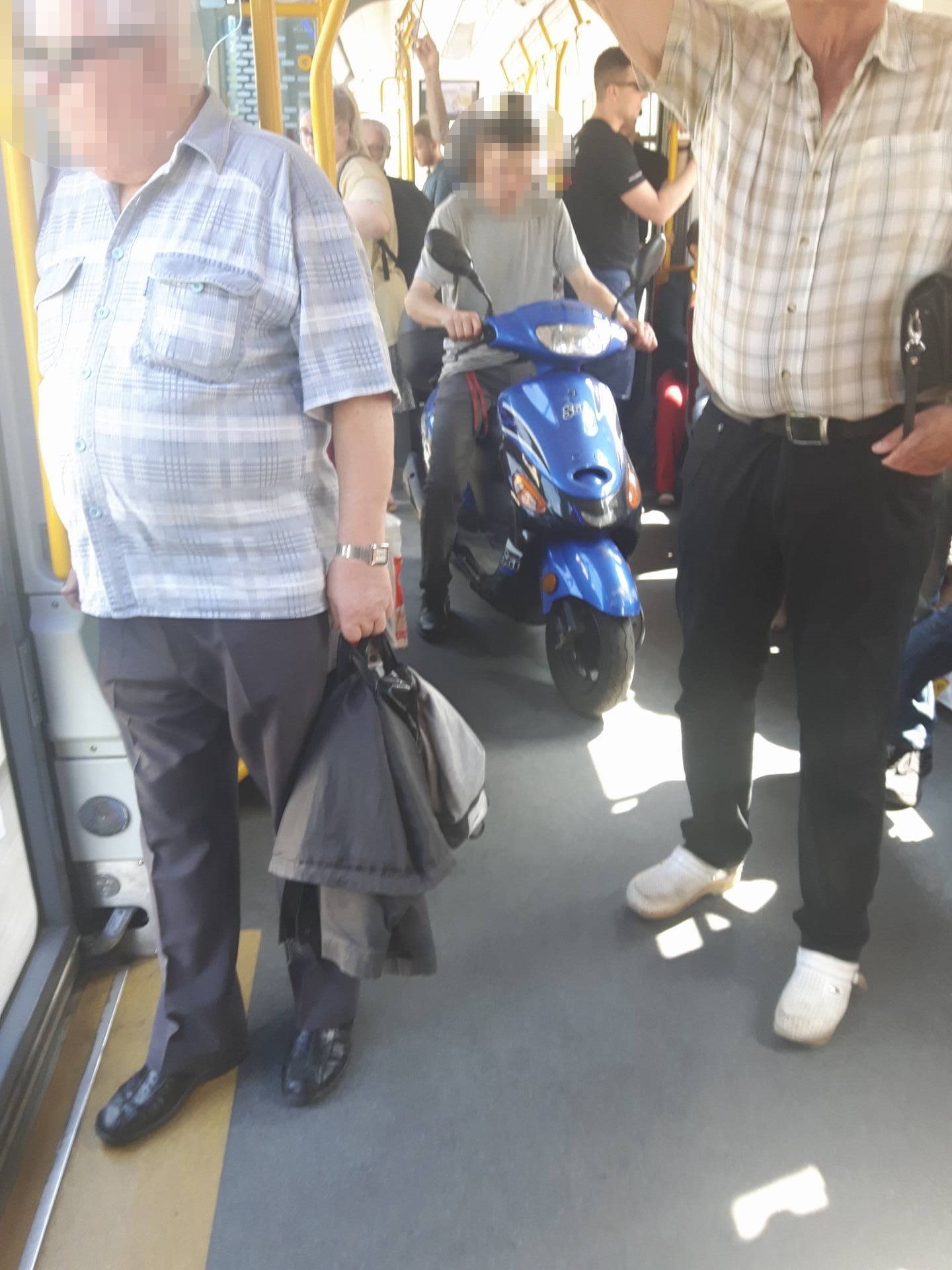Wyprzedzając pytania: czy można przewozić skuter w pojazdach komunikacji miejskiej? Oczywiście, że nie i motorniczy lub kierowca, który zauważy taką sytuację może odmówić przewozu. W tramwaju i autobusie można przewozić jedynie rower o ile wprowadzenie go nie zagraża innym pasażerom oraz miejsce nie jest zajęte przez osobę niepełnosprawną.
