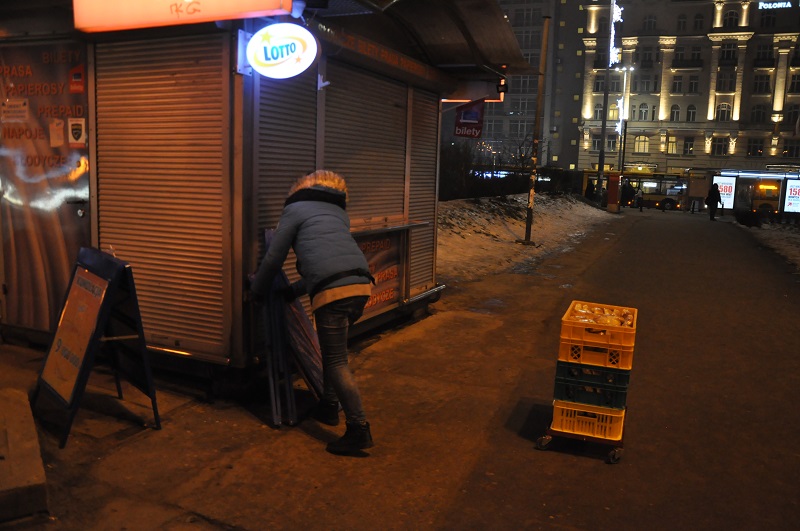 We wtorek 24 stycznia od wczesnego poranka trwały skoordynowane działania Straży Miejskiej, Centrum Pomocy Społecznej, Zarządu Dróg Miejskich, Zarządu Pałacu Kultury i Nauki, Sanepidu i policji, które miały przywrócić funkcjonalność tego miejsca i ukrócić nielegalną sprzedaż. Na winnych wykroczeń strażnicy nałożyli mandaty, ZDM usunął skrzynki i stojaki na parasole – stoiska zlikwidowano.