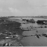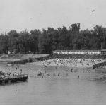 - Plaża Braci Kozłowskich, po prawej stronie mostu Poniatowskiego wzdłuż Saskiej Kępy. Lipiec 1936 roku.