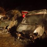 Nocny pożar auta osobowego, dostawczego oraz karetki z wyposażeniem. Całkowicie spłonęły trzy pojazdy
