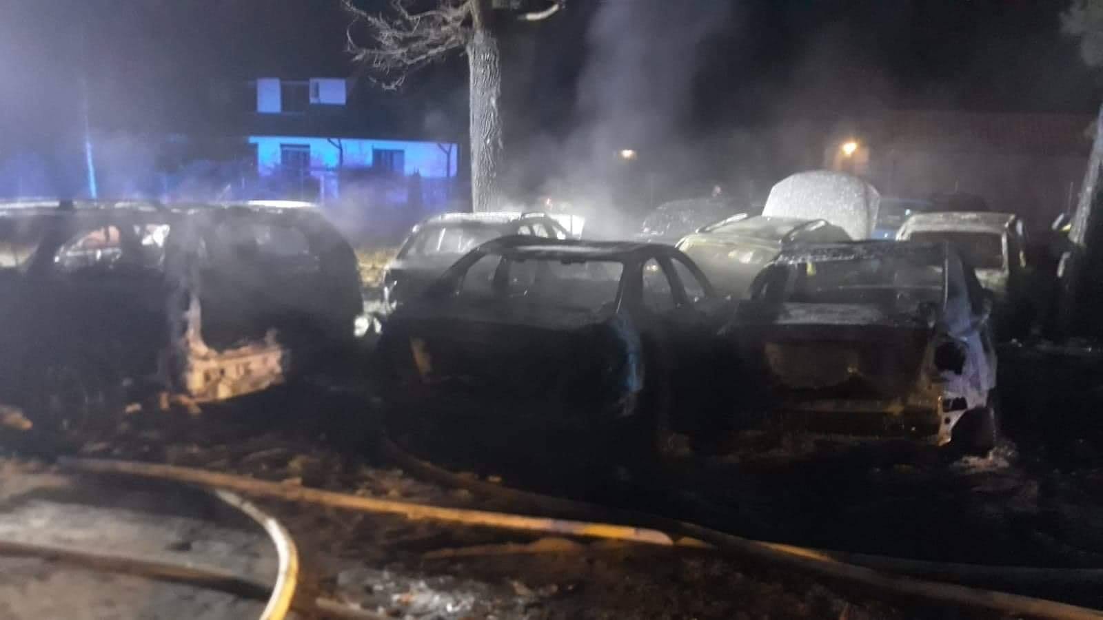Przy ul. Podkowy w wyniku pożaru spłonęło 9 samochodów osobowych. Nikt nie został ranny. Działania gaśnicze trwały do godz. 3:55.