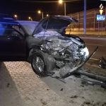 Nocny wypadek na Powązkowskiej. Porsche zderzyło się z mazdą i wjechało w latarnię