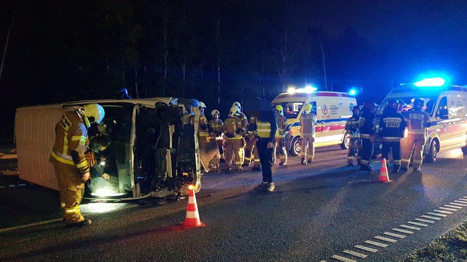 Nocny wypadek na trasie S8! Bus z pasażerami wywrócił się na bok