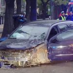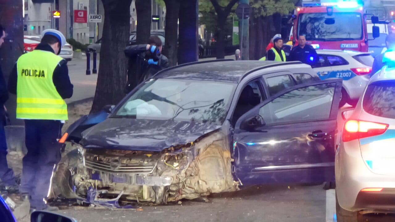 Nocny wypadek w Śródmieściu. Pijany obywatel Ukrainy wjechał w barierki, a następnie w drzewo. Nikt nie przyznaje się do prowadzenia autem