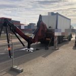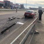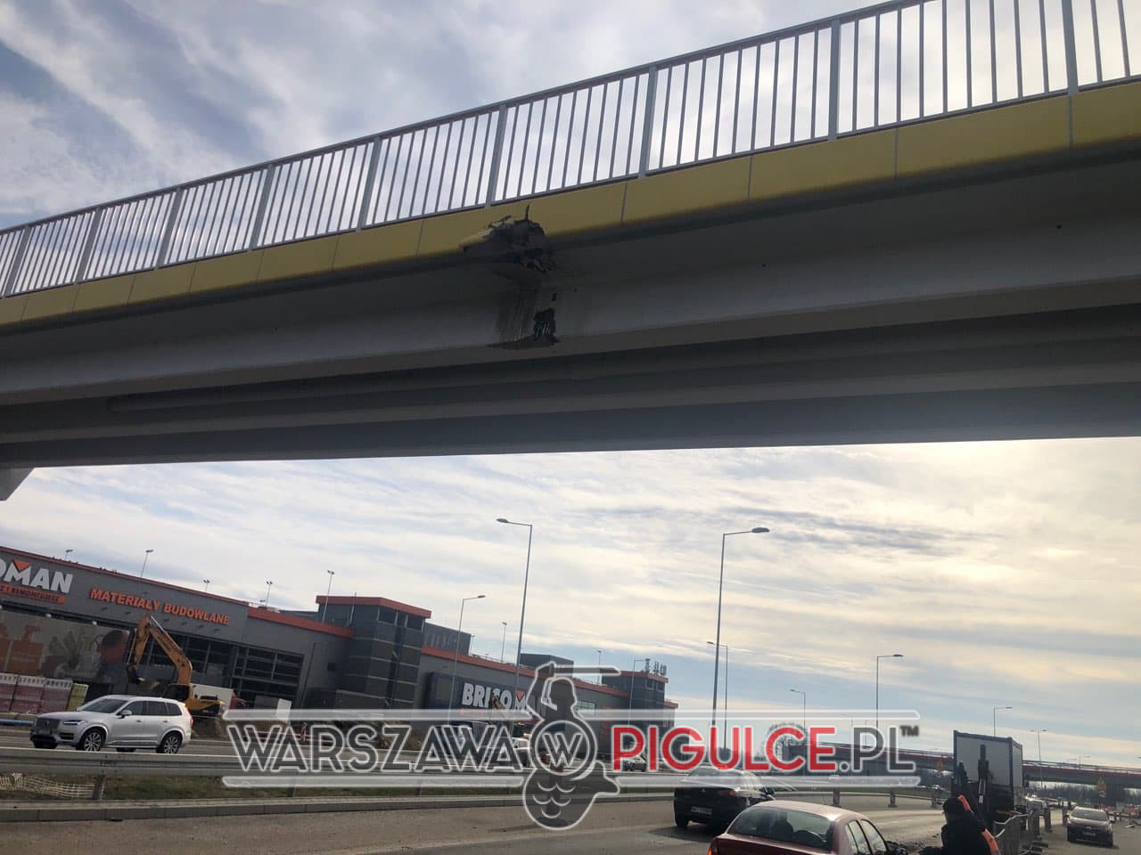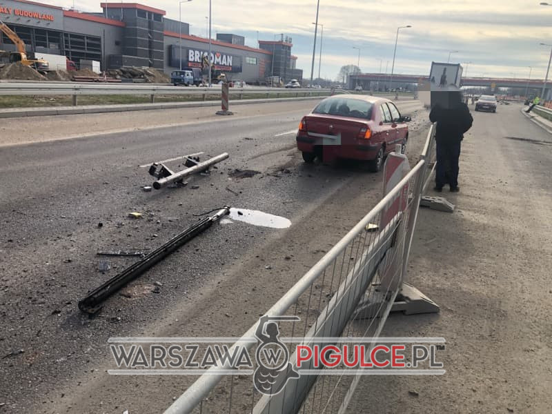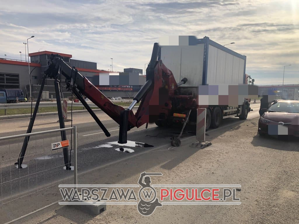 Na ulicy Przyczółkowej na wysokości ulicy Europejskiej kierujący ciężarówką nie złożył HDS-u i zahaczył o nową kładkę dla pieszych. W wyniku zderzenia z kładką części, które spadły na ulice uszkodziły samochód osobowy marki renault.