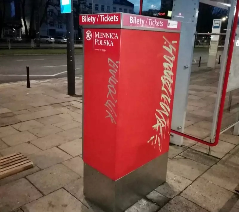 Pewien mężczyzna podczas oczekiwania na autobus przy rondzie Wiatraczna w centrum Pragi-Południe. Postanowił więc zostawić ślad swojego istnienia na… biletomacie