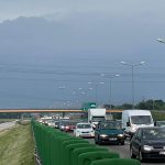 Zablokowany jest środkowy pas ruchu. Występują duże utrudnienia w ruchu.