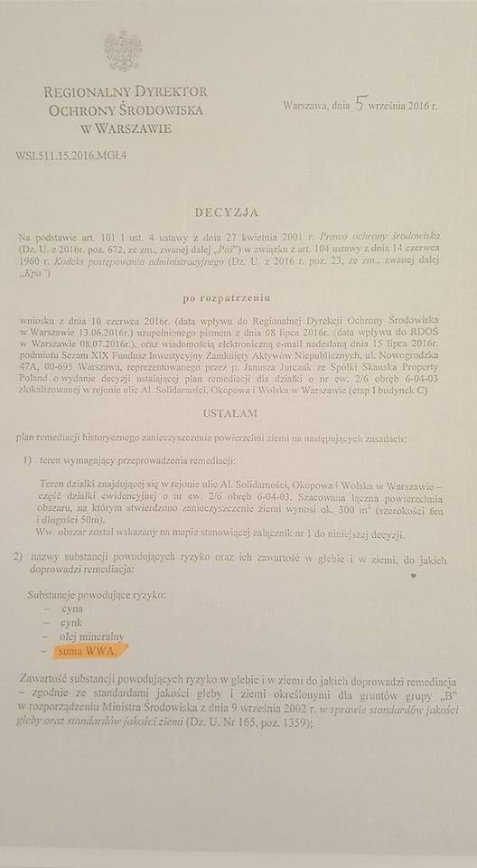 „Czy oczyszczanie gruntu ze skażeń (m.in. WWA) do głębokości 30 cm (!!) ma jakikolwiek sens? Czy to stąd mogły pochodzić silne odory, które były niedawno wyczuwalne w rejonie dawnego PDT?” – pyta Aneta Skubida