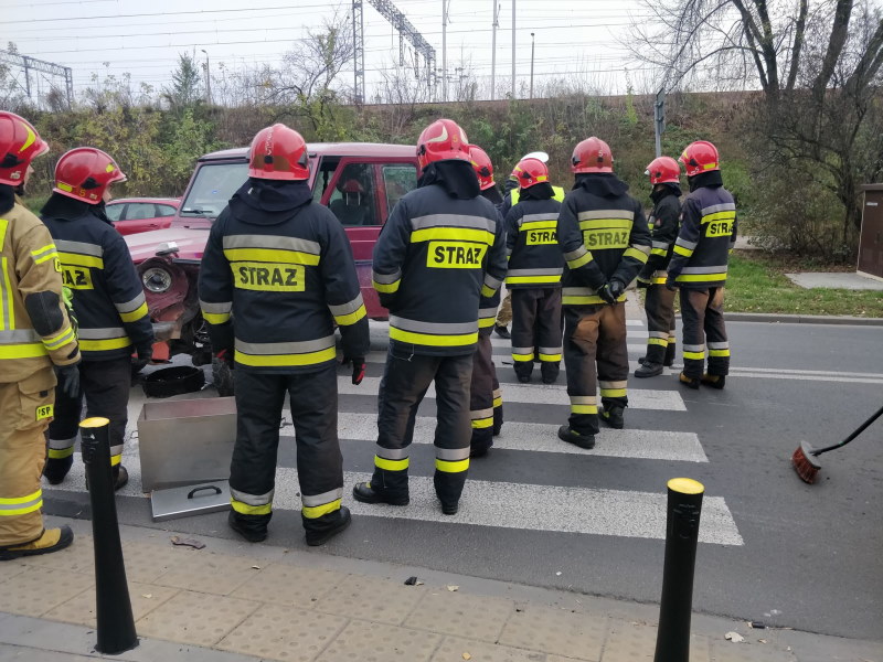 Odbiła się od krawężnika. Samochód wylądował na boku. Ulica jest zamknięta