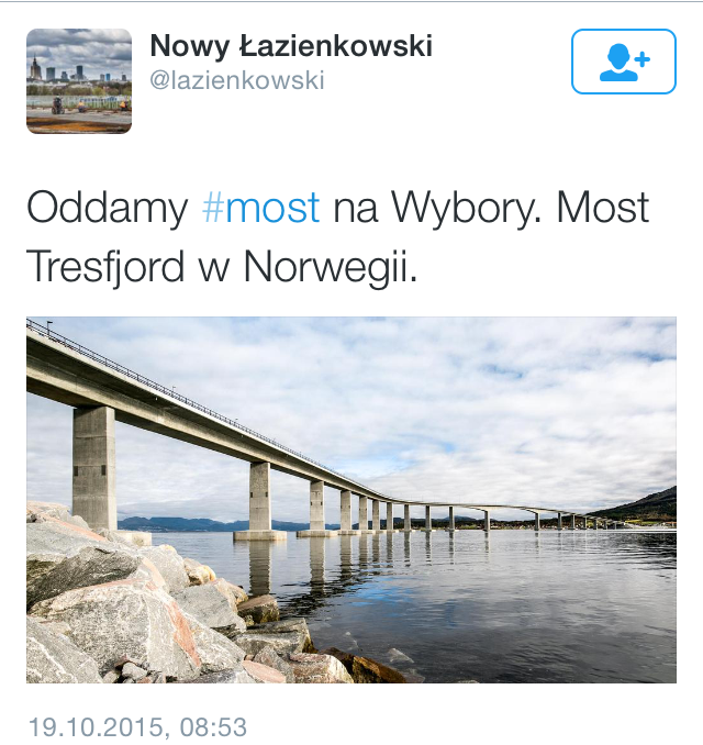 Burza wybuchła po wpisie wykonawcy mostu Łazienkowskiego. Rano, na profilu projektu na Twitterze można było przeczytać, że most zostanie oddany na wybory. Dodano, że chodzi o most Tresfjord w Norwegii. Chodzi więc o norweski most i norweskie wybory. Informacja jednak poszła w świat i została momentalnie podchwycona.