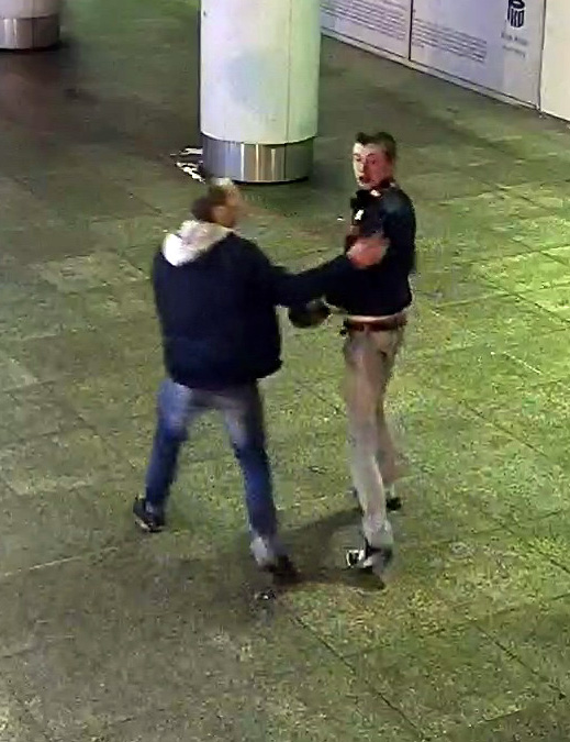 Napastnicy byli w wieku około 25 lat. Jeden z nich miał 185 cm wzrostu, był szczupły, włosy ciemne krótkie. Nie miał zarostu. Ubrany był w jasne jeansy, sportowe buty, kurtkę puchową z poziomymi pasami w kolorze granatowym, czerwonym i czarnym. Drugi mężczyzna miał ok. 170 cm wzrostu, ok. 70 kg wagi, szczupły, włosy ciemne krótkie, posiadał lekki zarost. Ubrany był w czarną kurtkę, jasno-szarą bluzę z kapturem i ciemne spodnie.