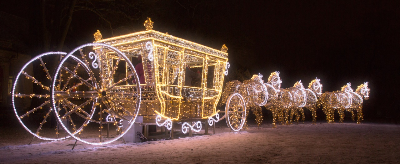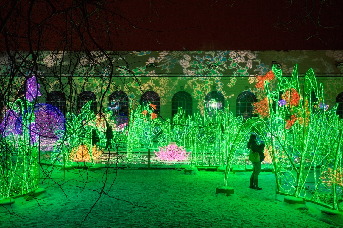 Królewski Ogród Światła przy pałacu w Wilanowie to wystawa plenerowa, w ramach której tysiące kolorowych diod ułożone są w finezyjne kształty. Ekspozycja podzielona jest na kilka różnorodnych tematycznie części. Goście mogą wybrać się na spacer po Magicznym Ogrodzie Króla, w którym ułożone ze świateł barokowe rośliny są większe niż ludzie. W Ogrodzie Wyobraźni czekają ich niezwykłe pokazy łączące światło z muzyką klasyczną. Tuż przy pałacu, na Złotym Dziedzińcu znajduje się zaprzężona w sześć koni królewska karoca, do której można wsiąść i zrobić sobie zdjęcie. W weekendy zaś na fasadzie pałacu wyświetlane są mappingi, czyli trójwymiarowe pokazy łączące światło, obraz i dźwięk, pod wpływem których poszczególne elementy dekoracji ożywają. Świetlna instalacja jest doskonałą propozycją na zimne i szare wieczory zarówno dla dzieci, jak i dla dorosłych!