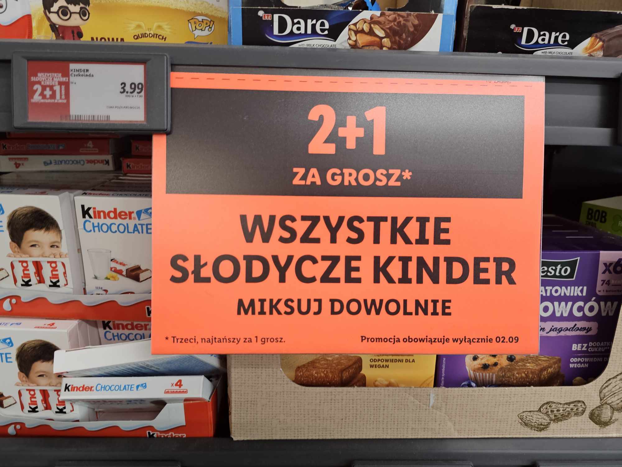 Lidl zaskakuje swoich klientów nie lada okazją. Tylko w ten poniedziałek, sklepy sieci Lidl oferują wyjątkową promocję na wszystkie słodycze marki Kinder. Zasady są proste: kupując trzy produkty, najtańszy otrzymasz za symboliczną złotówkę. Taka okazja zdarza się rzadko!