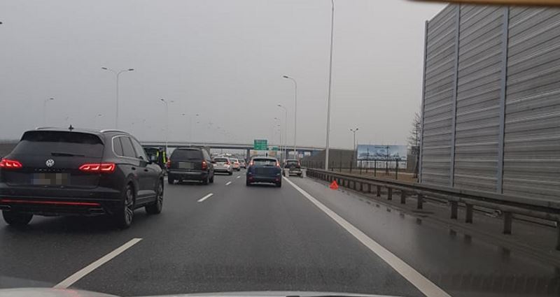 Zablokowany jest pobocze oraz prawy pas. Są duże utrudnienia w ruchu.