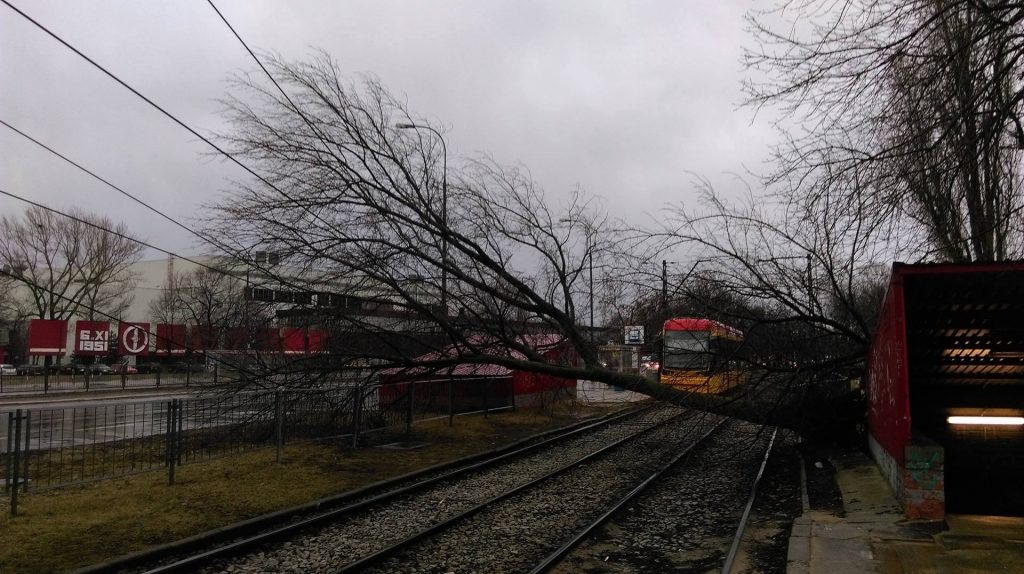Nie kursują tramwaje nr 4, 13, 20, 23 i 26 z powodu przewróconego drzewa na Jagiellońskiej. Poza tym z powodu zerwania trakcji nie kursują równiez linie 2, 17, 18 i 20.
