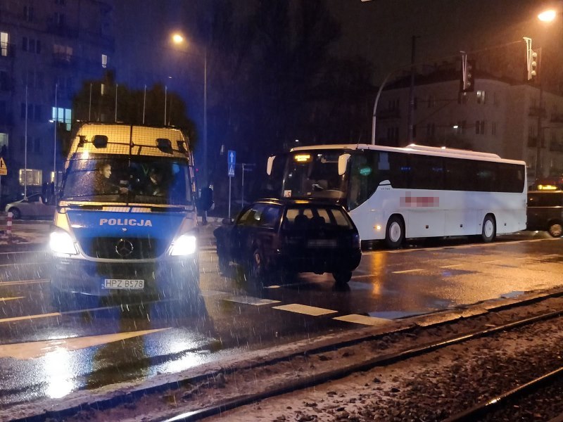 W Al. Waszyngtona doszło do zderzenia autobusu prywatnego przewoźnika oraz samochodu osobowego marki volkswagen. Policja kieruje ruchem.