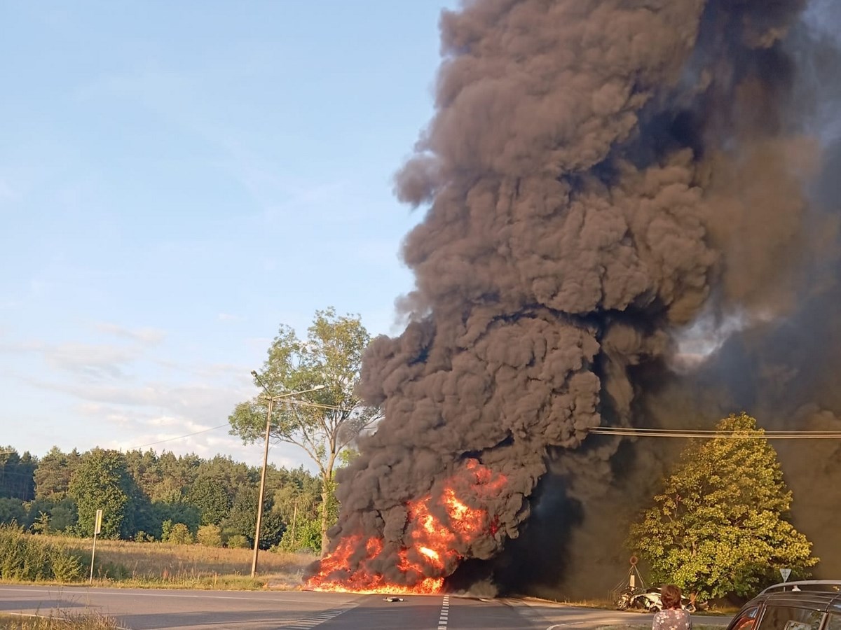 Informacje te potwierdził asp. szt. Artur Balcerski z policji w Płońsku. – W wyniku zderzenia cysterny z samochodem marki Nissan doszło do wycieku przewożonych substancji i pożaru. Cysterną kierował 32-letni mężczyzna, natomiast Nissanem podróżowało dwóch obcokrajowców. Pasażerka samochodu osobowego została przewieziona do szpitala – powiedział nam oficer prasowy. Dodał, że w wyniku wypadku i trwającej akcji gaśniczej droga w miejscu zdarzenia jest całkowicie zablokowana. Utrudnienia mogą potrwać wiele godzin. Z uwagi na duże natężenie ruchu w tym rejonie, kierowcy muszą liczyć się ze znacznymi opóźnieniami.