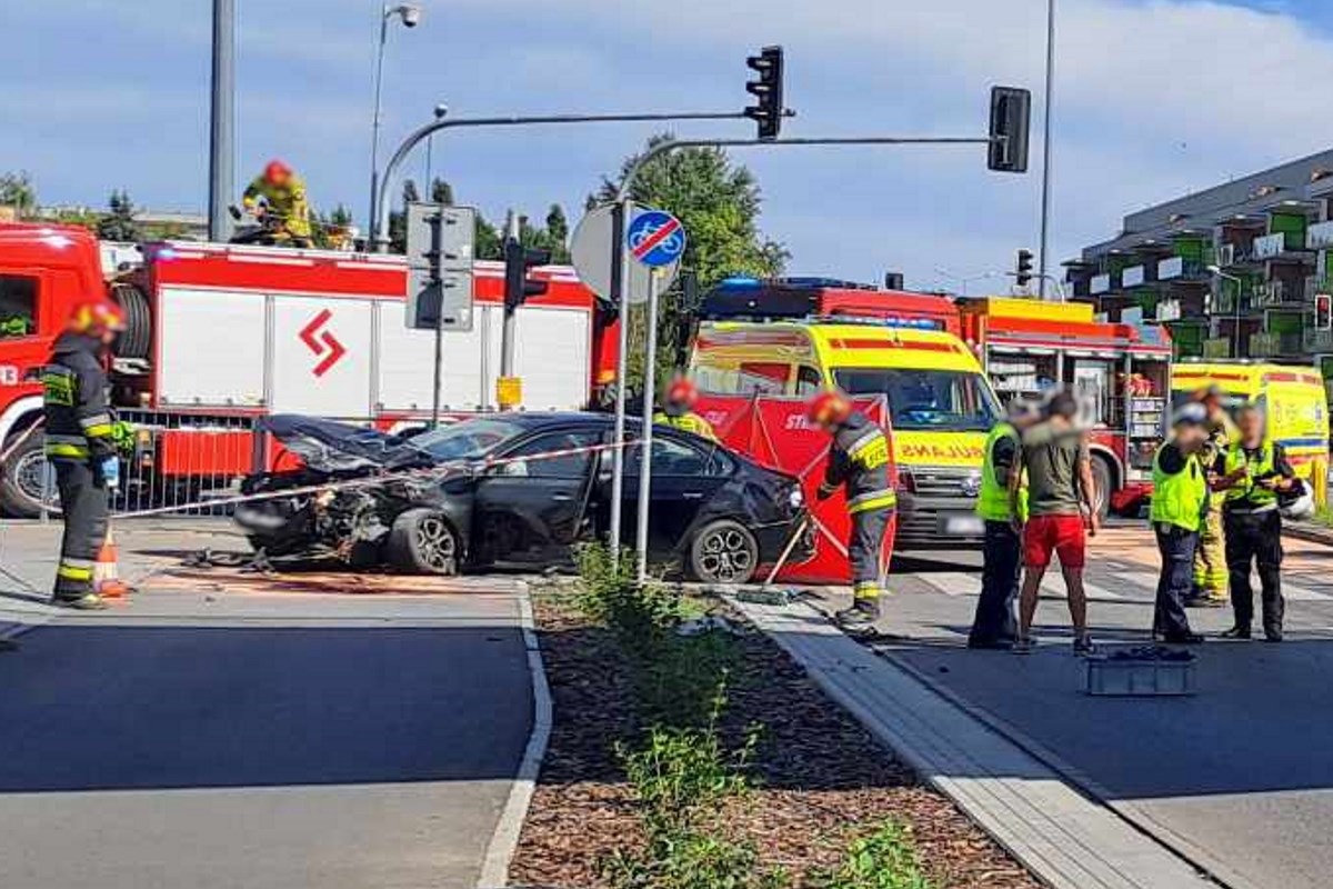 Na skrzyżowaniu ulic Lazurowej i Obrońców Grodna w Warszawie doszło do tragicznego w skutkach zderzenia karetki pogotowia z samochodem osobowym marki Volkswagen. Jedna osoba nie żyje, a trzy są ranne.