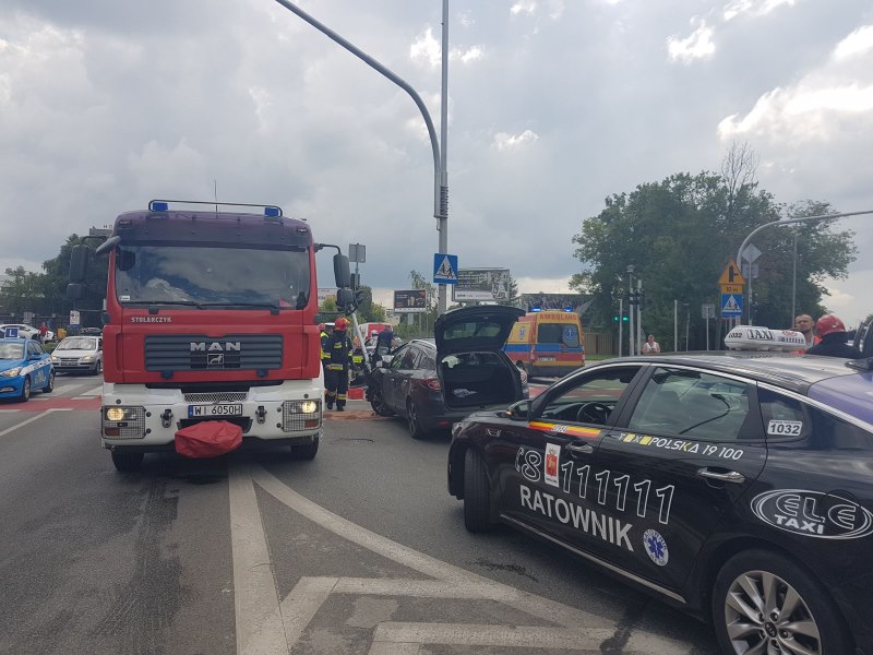 Na miejscu jest pogotowie oraz straż pożarna. Policja w drodze. Skrzyżowanie jest przejezdne, ale występują utrudnienia w ruchu.