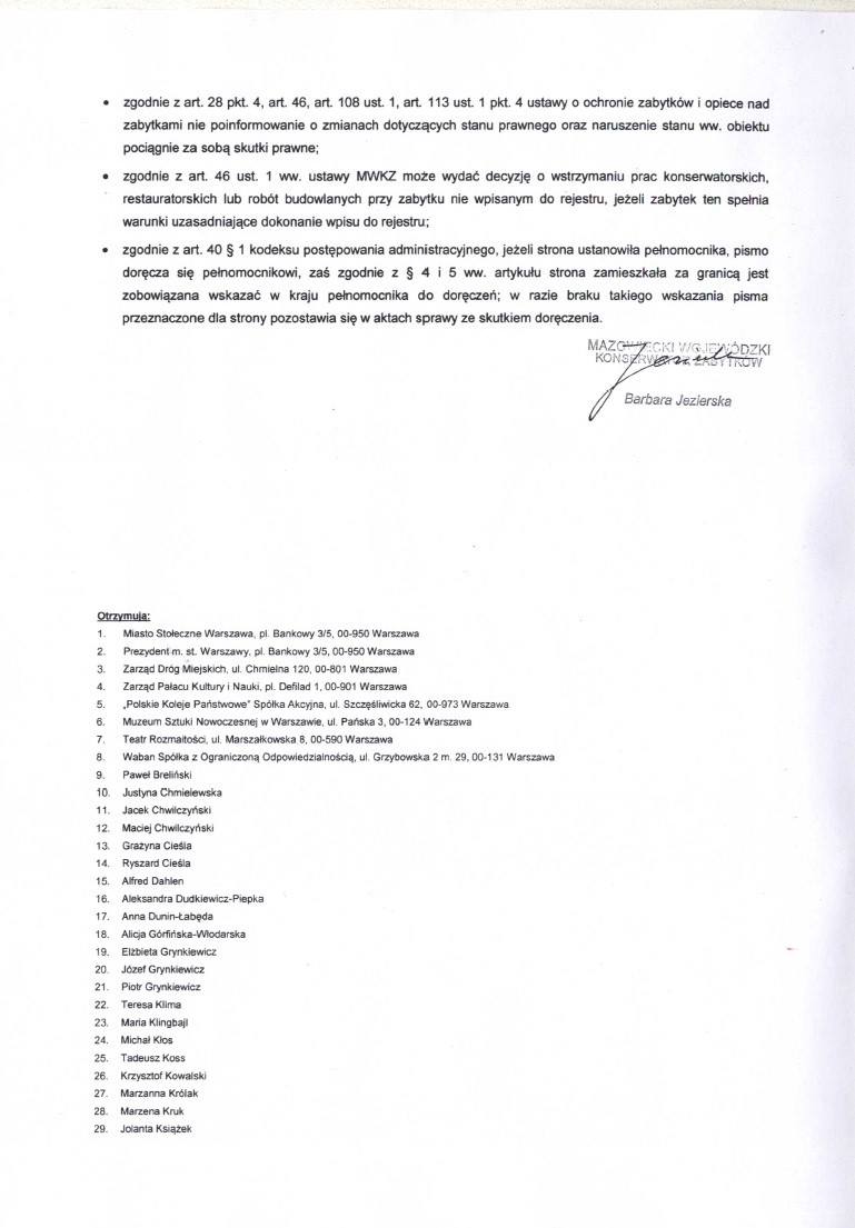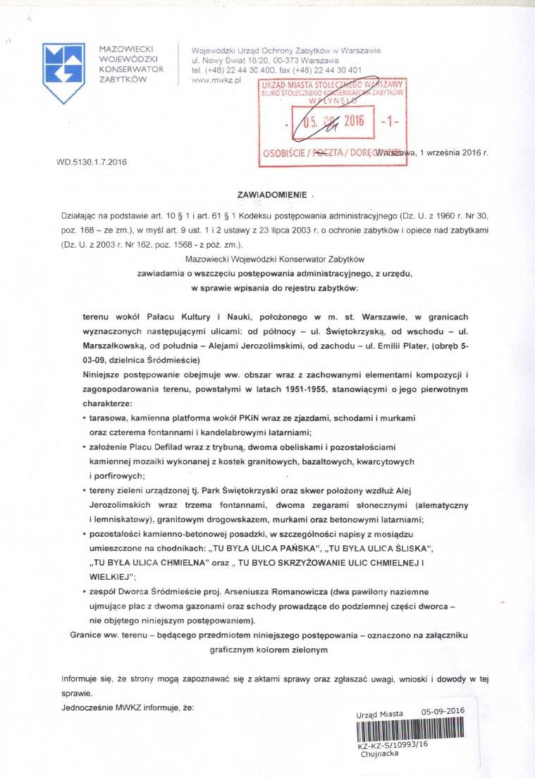 „Czy otoczenie Pałacu Kultury i Nauki trafi do rejestru zabytków? Barbara Jezierska, Mazowiecki Konserwator Zabytków własnie wszczęła postępowanie w tej sprawie.” – napisał na swoim Facebooku Michał Krasucki, zastępca stołecznego konserwatora zabytków.