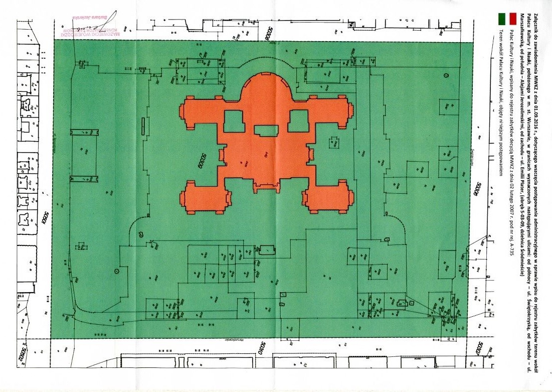 Postępowanie obejmuje cały teren wokół budynku między ulicami Świętokrzyską, Marszałkowską, Alejami Jerozolimskimi i Emilii Plater. Stawia to pod znakiem zapytania wszelkie inwestycje w najbliższym sąsiedztwie Pałacu, w tym na terenie, o którym było niedawno głośno w związku z aferą reprywatyzacyjną.