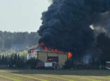 Dziś w godzinach popołudniowych w miejscowości Siarzewo (województwo kujawsko-pomorskie, powiat aleksandrowski) doszło do poważnego pożaru hal produkcyjnych zajmujących się obróbką folii. Ogień rozprzestrzenił się szybko, obejmując znaczną część obiektów. W akcji gaśniczej uczestniczy 25 jednostek straży pożarnej, które walczą z płomieniami i zabezpieczają teren.