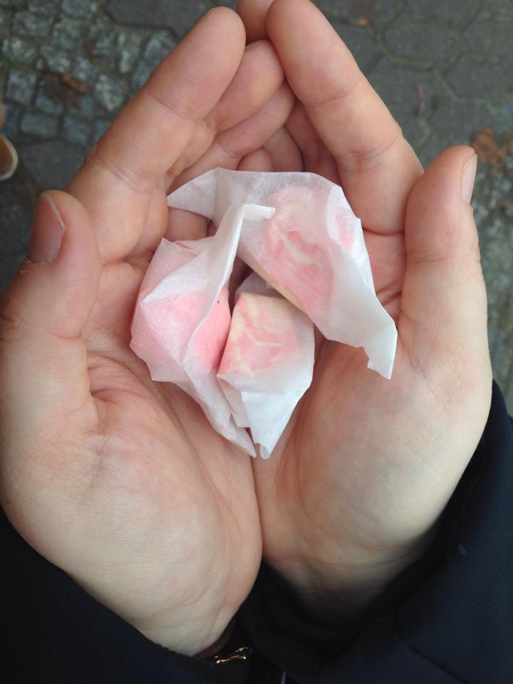 Jest obecna na warszawskich ulicach odkąd pamiętam. Różowo-kremowy cukierek zawinięty w pergamin. Można go kupić przy okazji każdego większego wydarzenia w stolicy. Jest sprzedawana pod cmentarzami, na bazarach, w parkach. 30 stycznia 2008 został wpisany do rejestru produktów tradycyjnych.