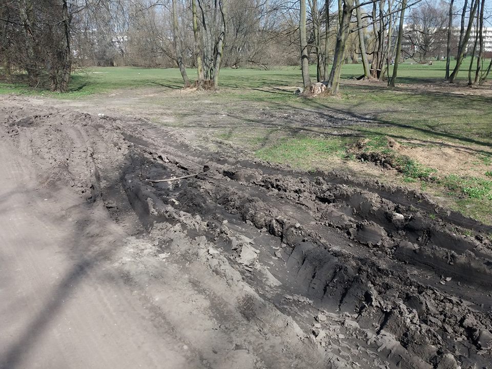 Park Skaryszewski wciąż rozjeżdżany przez samochody