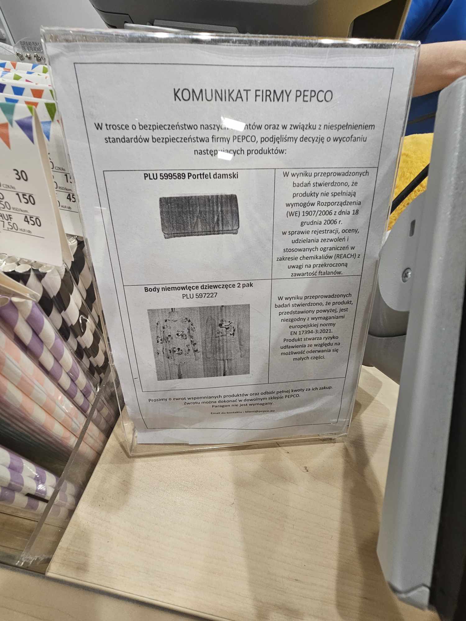 Pepco podkreśla, że bezpieczeństwo klientów jest dla firmy najważniejsze. W związku z tym apelują do wszystkich, którzy zakupili wyżej wymienione produkty, o jak najszybszy ich zwrot. Firma przeprasza za wszelkie niedogodności i dziękuje za zrozumienie.