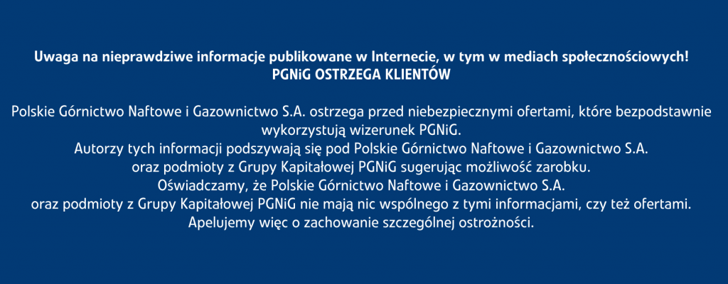 „Uwaga na nieprawdziwe informacje publikowane w Internecie, w tym w mediach społecznościowych! PGNiG ostrzega klientów! Polskie Górnictwo Naftowe i Gazownictwo S.A. ostrzega przed niebezpiecznymi ofertami, które bezpodstawnie wykorzystują wizerunek PGNiG.” – czytamy w komunikacie na stronie PGNiG.