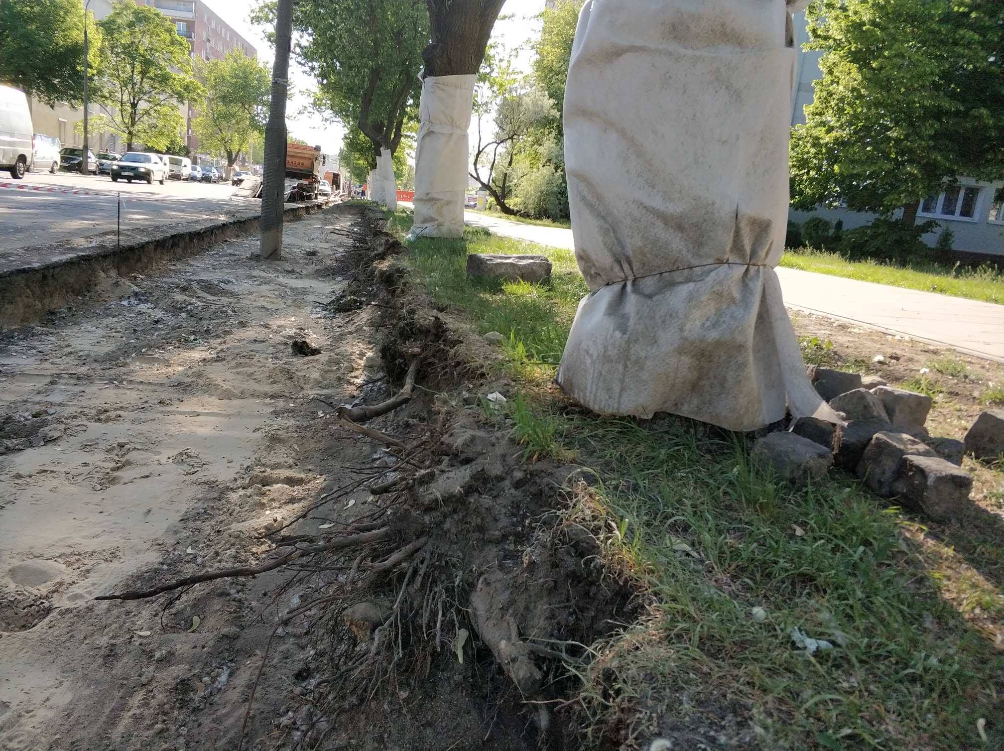 Jaki jest sens zabezpieczania pnia, gdy uszkodzone są korzenie? Niestety dziś nasze próby kontaktu z Zarządem Zieleni m. st. Warszawy nie powiodły się.