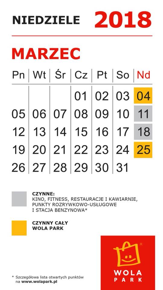Pełny kalendarz niedziel handlowych, niedziel z ograniczeniami handlu i innych świąt znajdziecie tutaj: http://bluecity.pl/kontakt/kalendarz-handlowy