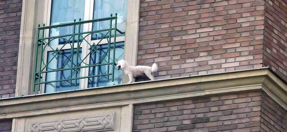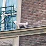 Pies wyszedł na gzyms! Trwa akcja straży pożarnej!
