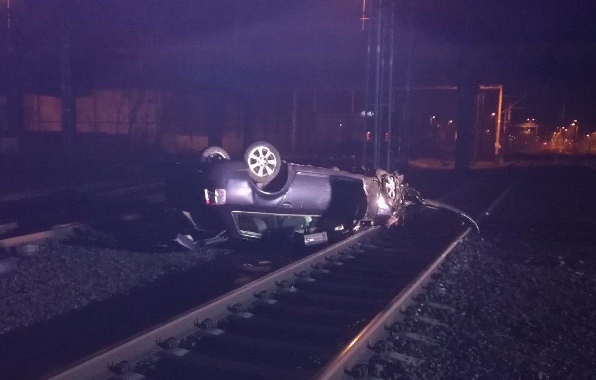 Kierujący audi z bardzo dużą prędkością wjechał w ul. Botaniczną, a następnie wpadł na torowisko. Uderzenie felgi o szynę kolejową było tak duże, że auto dwukrotnie dachowało. Sprawca kradzieży wypadł z pojazdu i został przygnieciony przez auto. Policjanci natychmiast ruszyli z pomocą. Nie byli w stanie podnieść wraku pojazdu, więc wezwali straż pożarną, która dopiero przy użyciu poduszek pneumatycznych podniosła samochód. Ranny mężczyzna trafił do szpitala. Mundurowi ustalili, że sprawcą kradzieży i pościgu pojazdu jest 39-letni mieszkaniec Sochaczewa. Badanie wykazało, że był pijany, miał ponad 1,5 promila alkoholu w organizmie. Po sprawdzeniu w policyjnych bazach danych okazało się, że ma cofnięte uprawnienia do kierowania pojazdami. Aby zapewnić bezpieczeństwo podróżującym pociągami, a także osobom pracującym na miejscu zdarzenia, konieczne było kilkugodzinne wstrzymanie ruchu kolejowego.