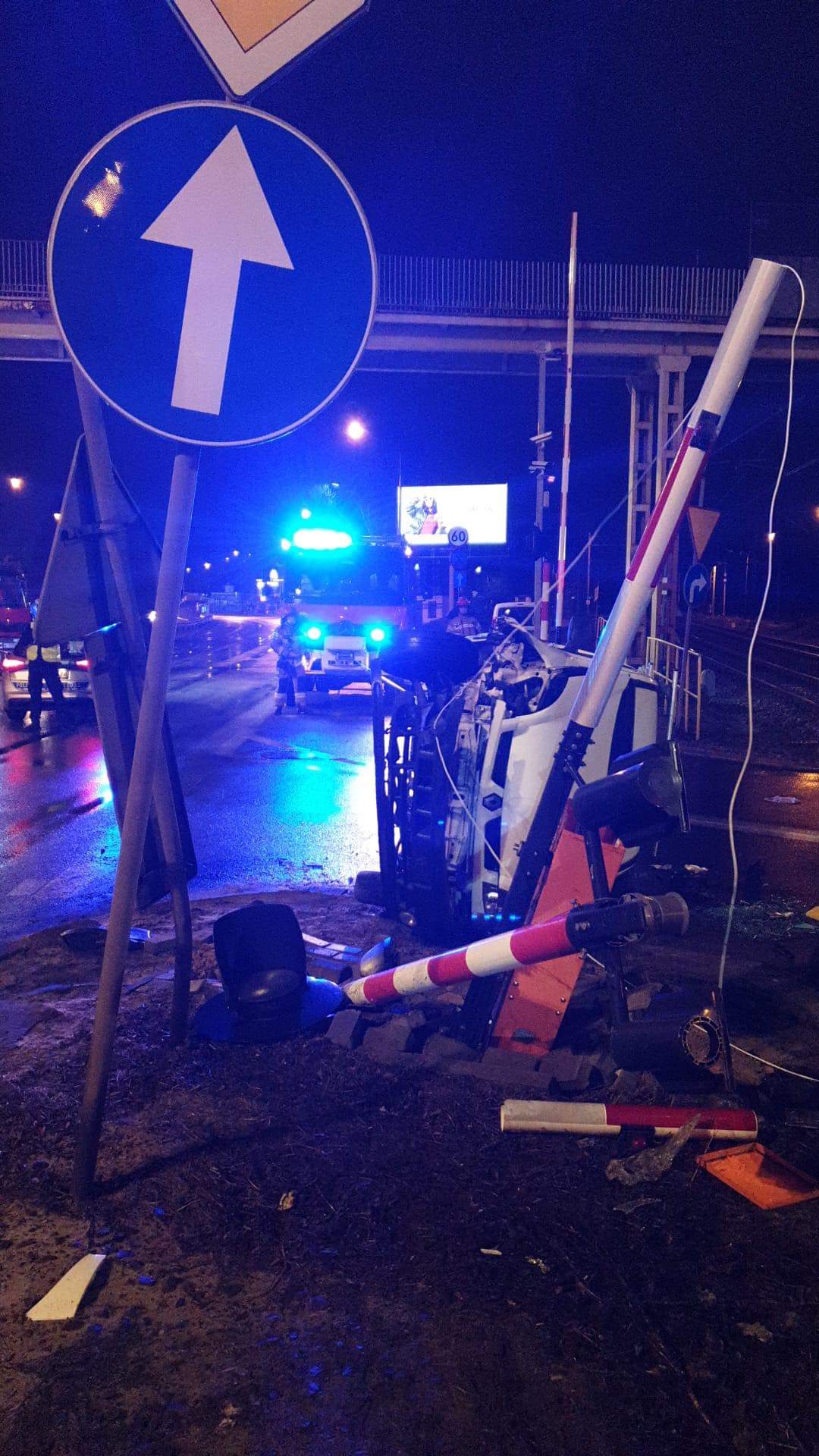 Pijany busem wjechał w rogatki. Pojazd wywrócił się na bok. Kierowca miał 2,4 promila