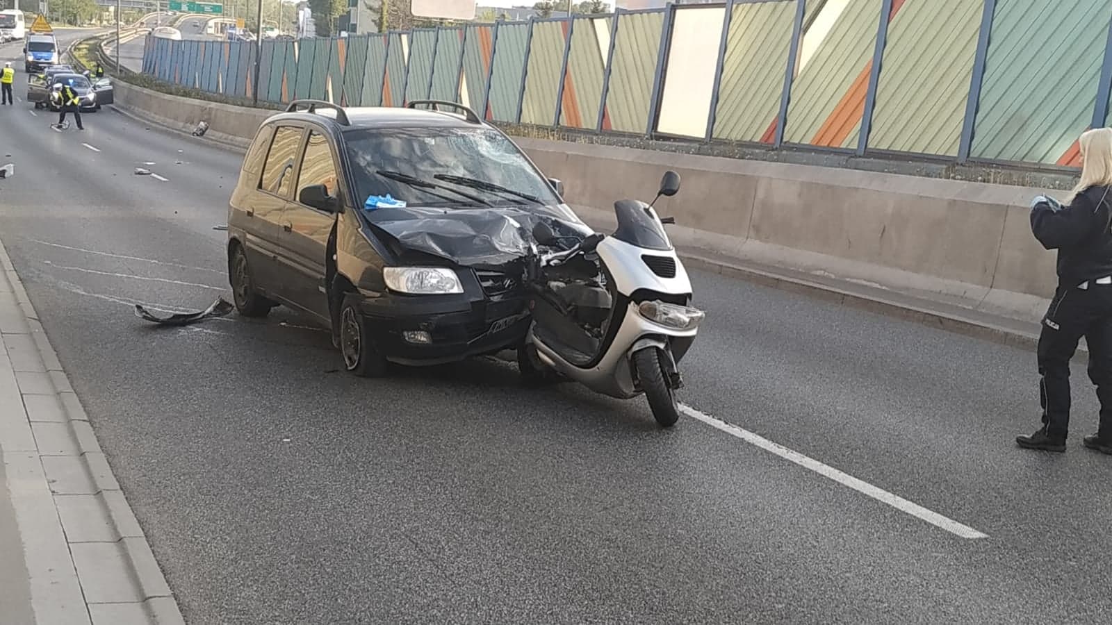 Do zdarzenia doszło na Prymasa Tysiąclecia na wysokości Wolskiej kierowca hyundaia wjechał w motorower jak się okazało wcześniej spowodował kolizję z oplem na ulicy Obozowej. Kierowca motoroweru trafił do szpitala.