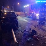 Płochocińska zablokowana po wypadku. Jedno z aut wjechało w słup energetyczny