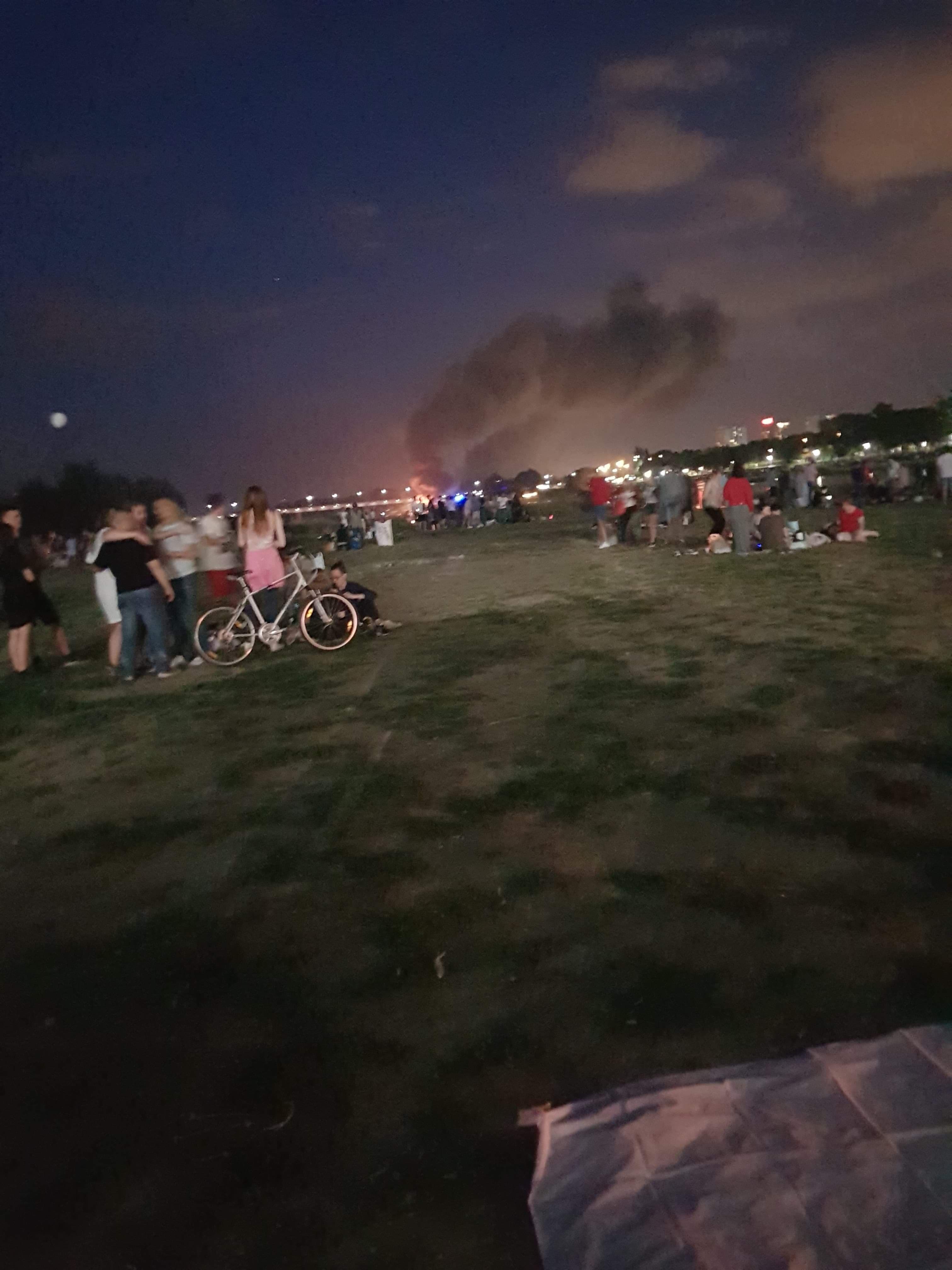 Pożar przy Moście Łazienkowskim. Ogień widoczny z daleka [WIDEO]