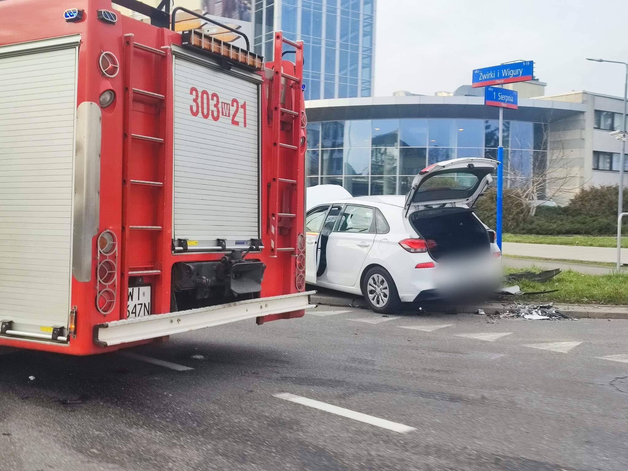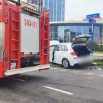 Na skrzyżowaniu ulic Żwirki i Wigury i 1 sierpnia doszło do zderzenia opla hyundaiem, a następnie Hyundai wjechał w latarnię.