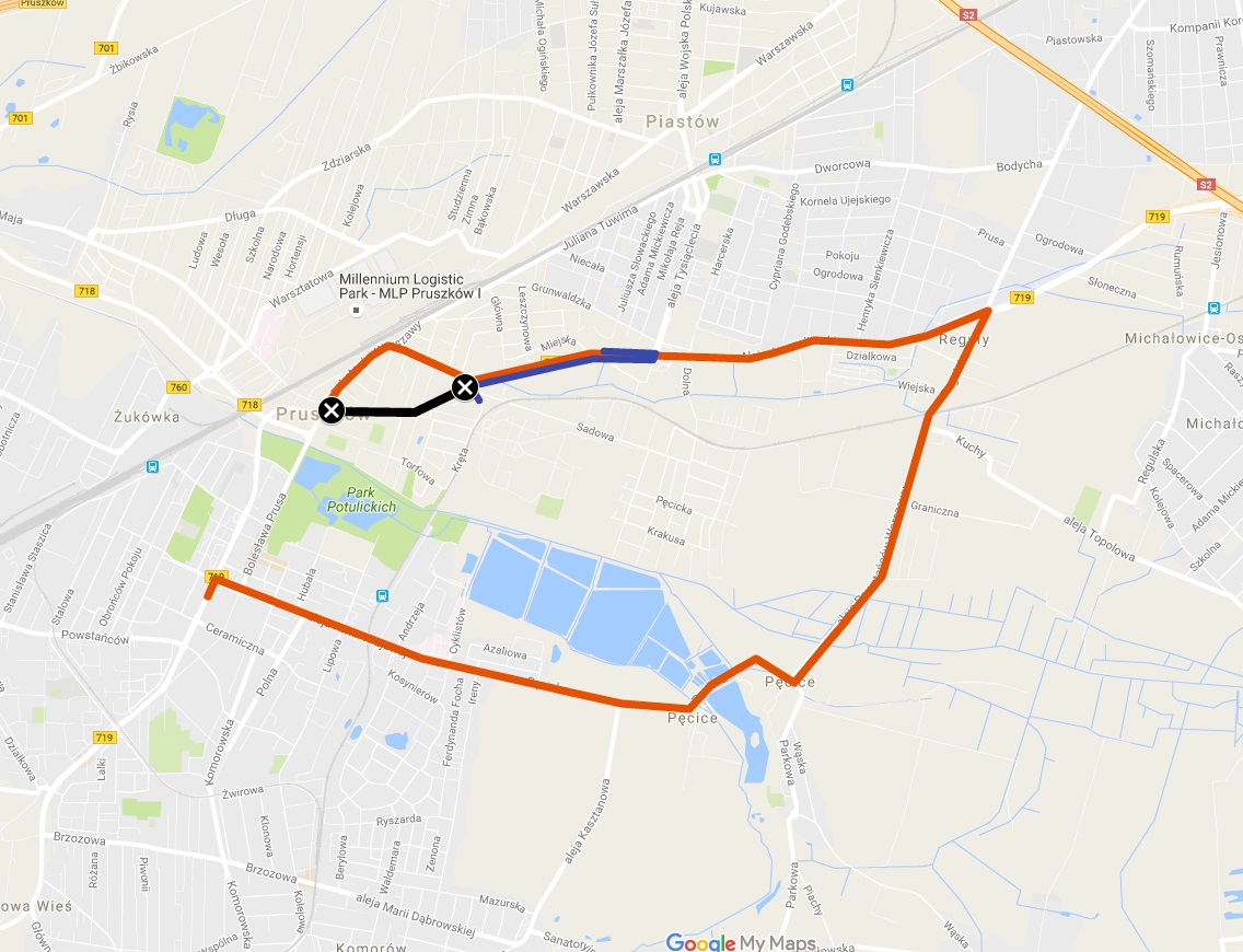 W związku z przebudową drogi nr 719 – Al. Jerozolimskich w Pruszkowie tzw. „wąskiego gardła” na odcinku od ul. Partyzantów do ul. Bohaterów Warszawy od 3 listopada na okres 5 m-cy droga zostanie całkowicie wyłączona z ruchu.