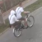 Rysopis mężczyzn: wiek około 17 lat; kierujący rowerem: włosy jasne krótkie, koszulka biała z napisem, szare krótkie spodenki, czarne buty sportowe, białe skarpetki „stópki”, przez klatkę piersiową miał przewieszoną czarną torebkę. Pasażer jadący na bagażniku: biała bluza z kapturem z n/n wzorem na klatce piersiowej, ciemne spodnie, przez klatkę piersiową przewieszona czarna torebka.