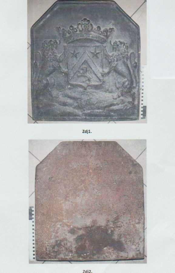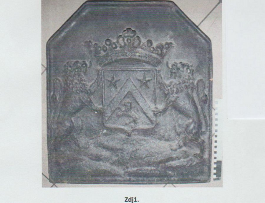 Płyta waży kilkadziesiąt kilogramów posiada odlew w postaci dwóch lwów opartych o tarczę herbową z wizerunkiem lwa i dwóch gwiazdek, nad którą jest otwarta korona.