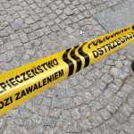 Taśmy zagradzały drogę pomiędzy chodnikami, a jezdnią, przejście było więc miejscami niemożliwe.