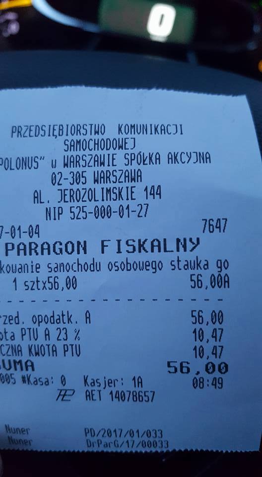 Jeden z Czytelników poinformował nas, że opłata za parking na Dworcu Zachodnim wzrosła niemal pięciokrotnie i wynosi 56 zł. Na dowód przesłał paragon. Polonus twierdzi, że od stycznia postój tam jest zakazany dla samochodów osobowych.