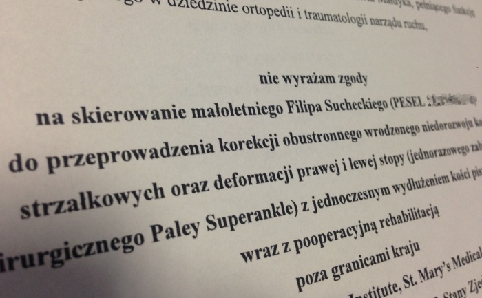 W decyzji odmownej NFZ próbuje przekonać, że podobne zabiegi można wykonać w Polsce – w Otwocku. Paulina wie jednak, że w kraju jest tylko dwójka dzieci z tą samą wadą co Filip. Że nikt nie ma doświadczenia w leczeniu tak potwornie rzadkiej i skomplikowanej choroby. Że sama operacja to za mało, potrzebna jest jeszcze specjalistyczna rehabilitacja powiązana z operacjami, której tutaj Filipowi nie jest w stanie zapewnić. Dla NFZ brak doświadczenia to nie przesłanka do refundacji, ale Paulina nie zamierza pozwolić nikomu uczyć się na jej dziecku.
