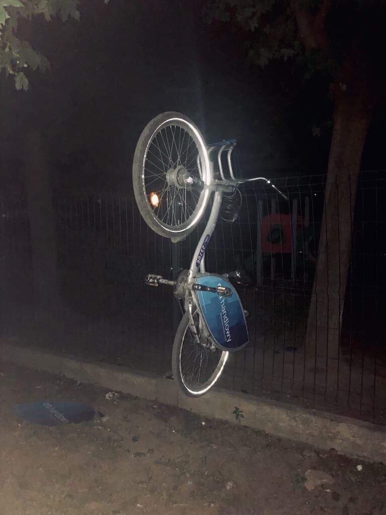 Porzucenie rowerów miejskich. Jeden z nich „zawisł” w powietrzu