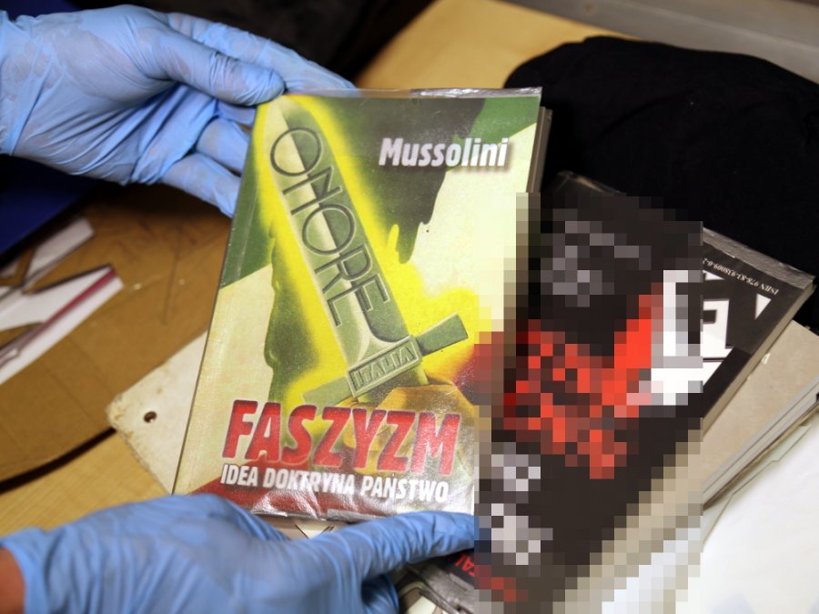W trakcie przeszukania jego miejsca pobytu policjanci znaleźli koszulkę z zakazanym symbolem, a także wiele materiałów o charakterze propagującym ustrój totalitarny, w tym książkę odnoszącą się bezpośrednio do ustroju faszystowskiego.