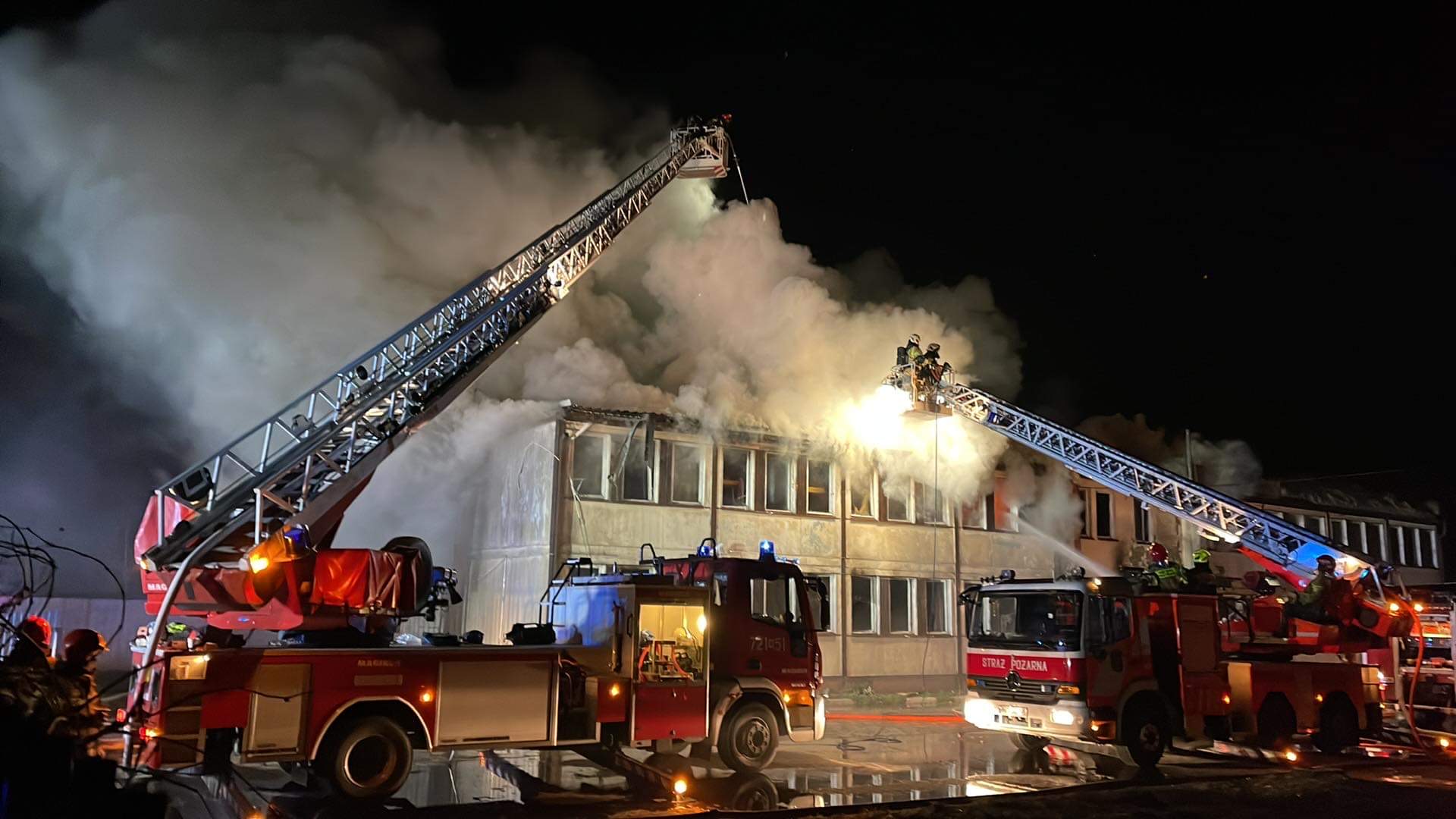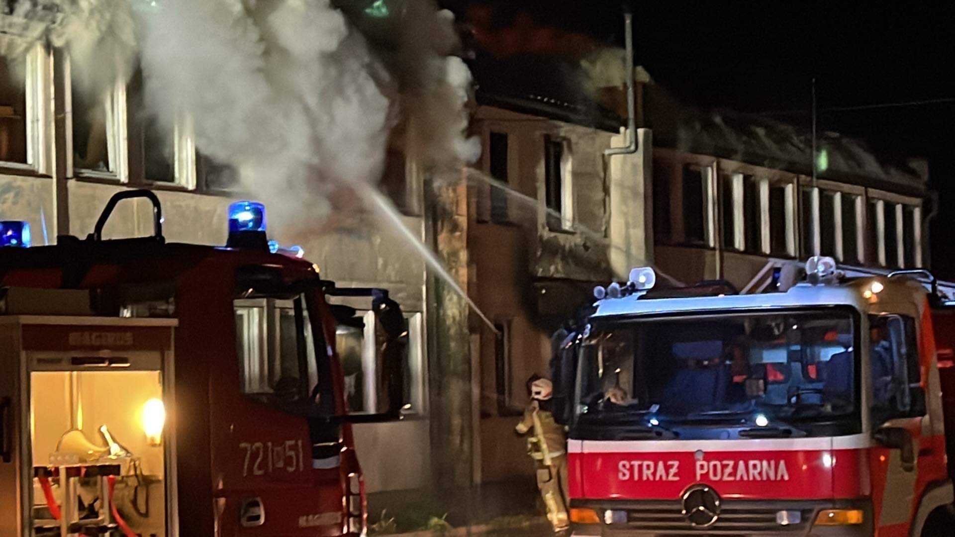 Potężny pożar budynku pracowniczego! Jedna osoba nie żyje. Trwa akcja gaśnicza