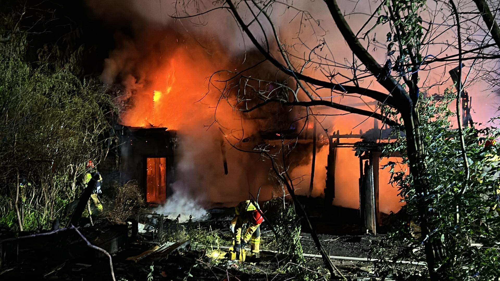 Ulica Redutowa jest zablokowana. Aktualnie nie wiadomo, czy ktoś przebywał w budynku.