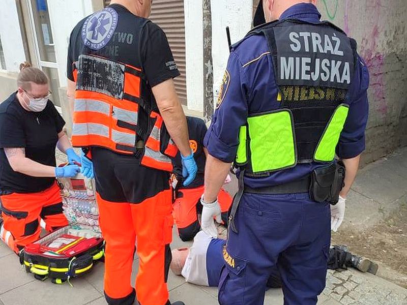 Do momentu przyjazdu pogotowia, strażnicy opiekowali się nim, a potem wspomogli w przeniesieniu go do karetki. Został przewieziony do szpitala. Strażnicy przypominają, by nie ignorować leżących ludzi – nie zawsze przyczyną jest alkohol. Jeden telefon może być kluczem do uratowania życia.